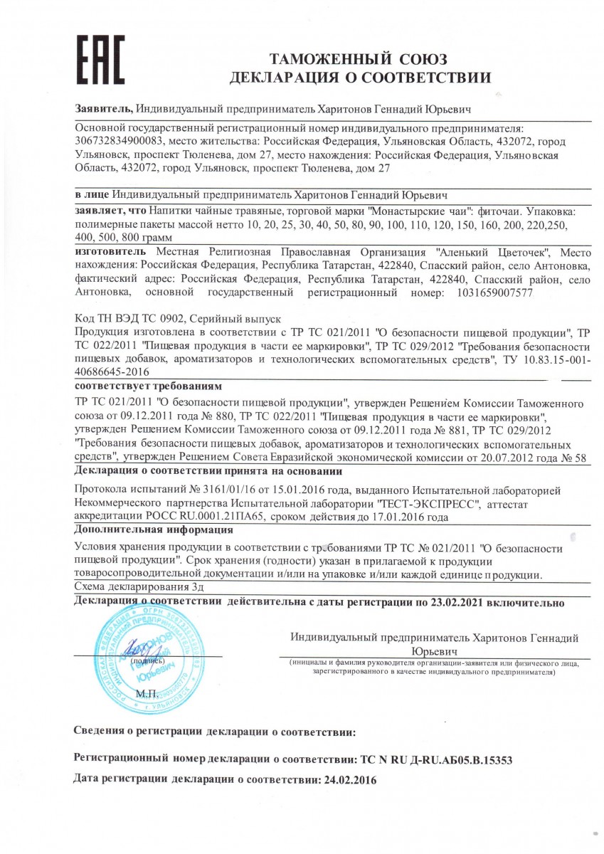 Все продукты проходят радиационный контроль в аккредитованной лаборатории Краснодарского Края, г. Белореченск и имеют сертификаты соответствия.