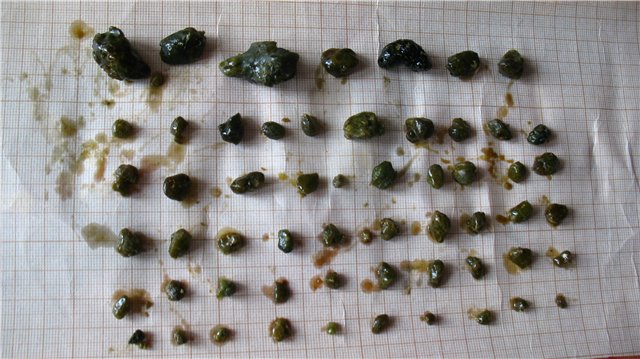 Необходимо взять 300 г любого оливкового масла и такое же количество свежеприготовленного сока белокочанной капусты. Спустя шесть часов после последнего приема пищи выпейте 3 столовых ложки оливкового масла и запейте 1 столовой ложкой свежего капустного сока. Повторяйте эту процедуру через каждые полчаса до тех пор пока не выпьете все масло. После этого выпейте остаток капустного сока.