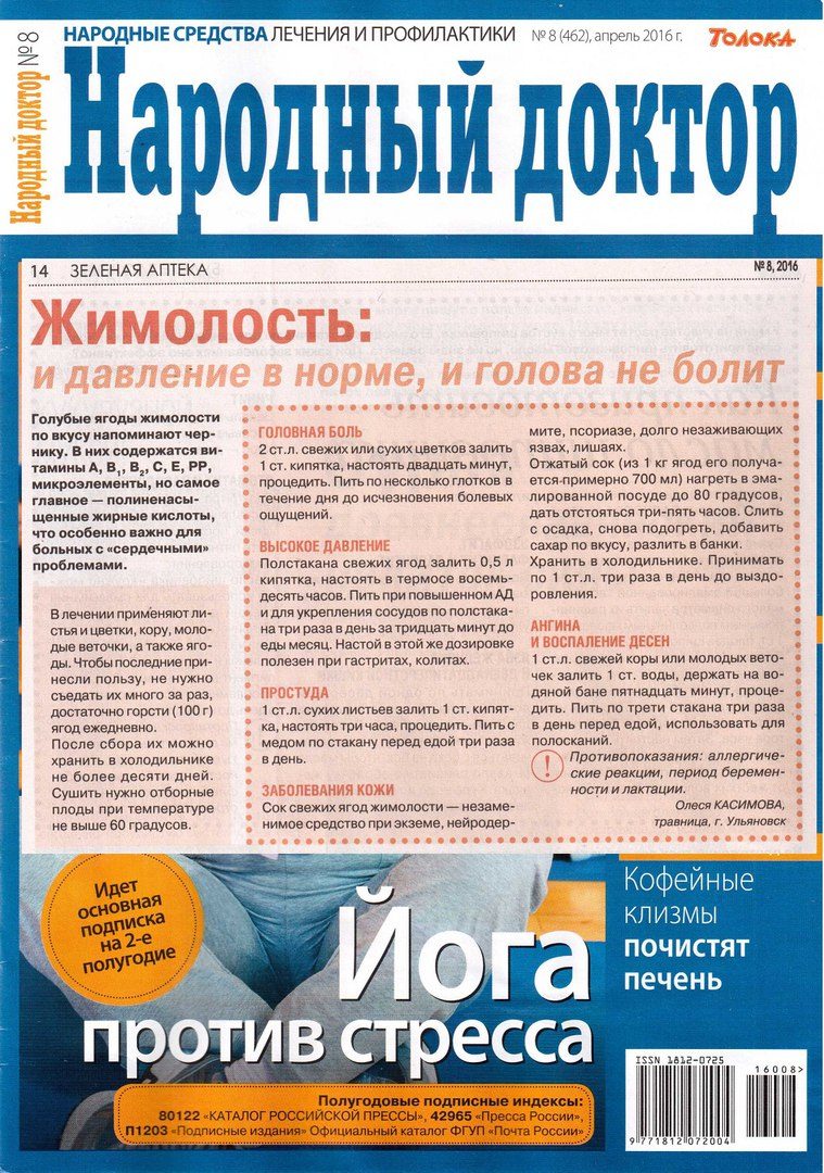 ЖИМОЛОСТЬ: И ДАВЛЕНИЕ В НОРМЕ, И ГОЛОВА НЕ БОЛИТ (НАРОДНЫЙ ДОКТОР №8, 2016)