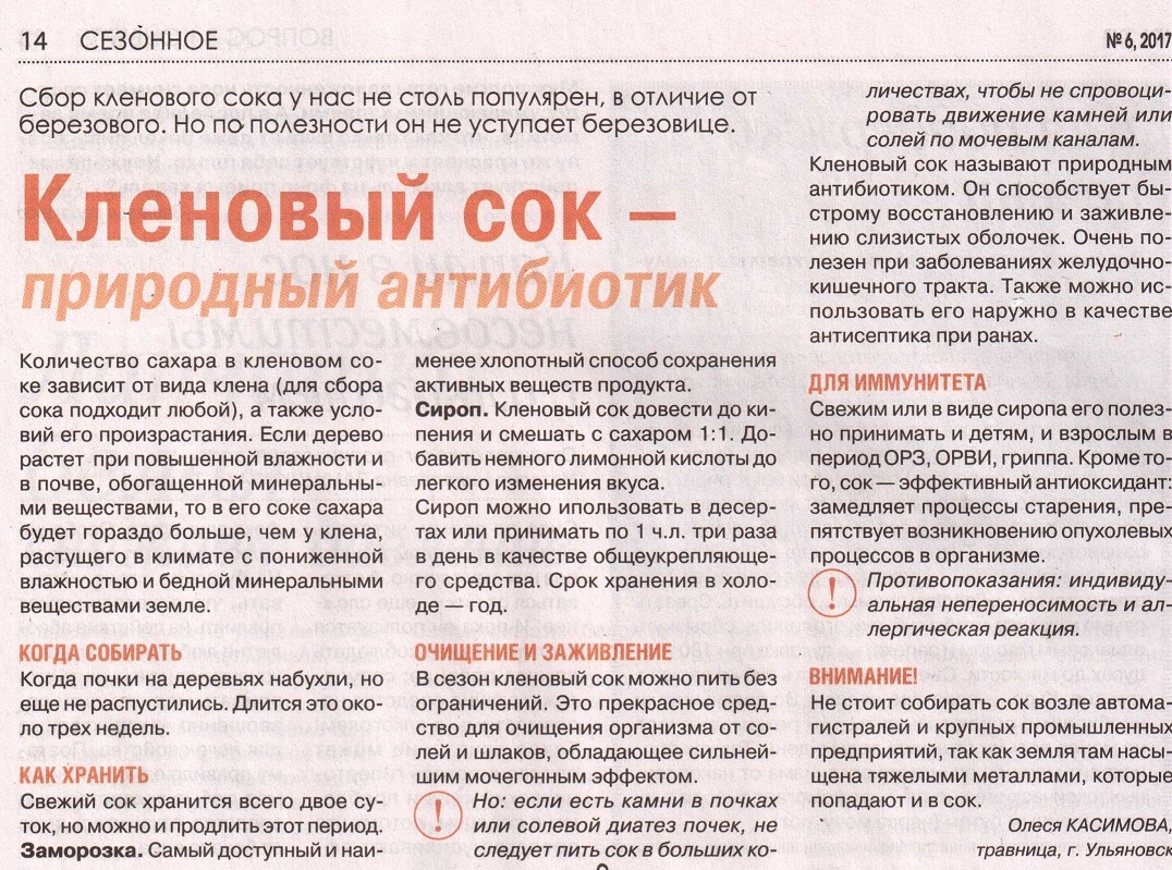 КЛЕНОВЫЙ СОК - ПРИРОДНЫЙ АНТИБИОТИК ( НАШИ ЗАМЕТКИ НА СТРАНИЦАХ НАРОДНОГО ДОКТОРА №6, 2017).