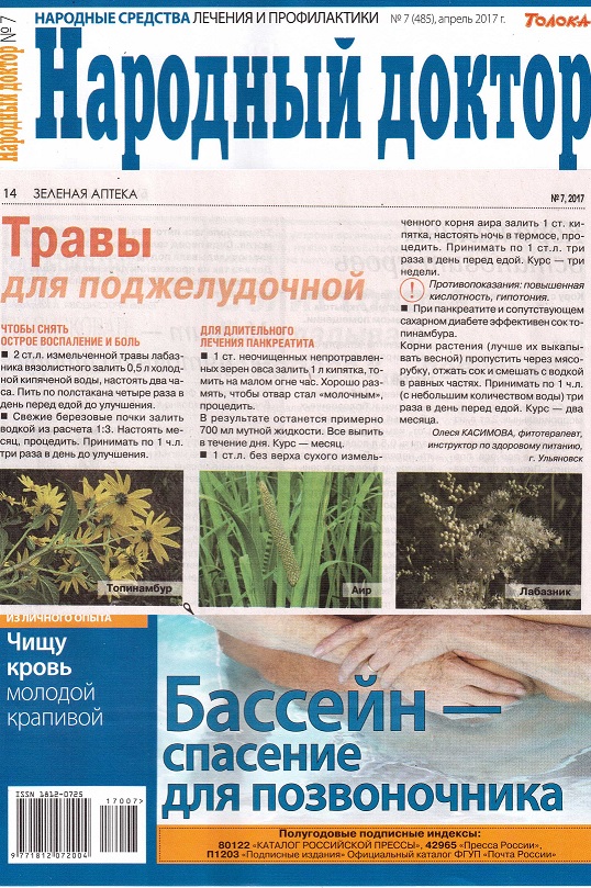 ТРАВЫ ДЛЯ ПОДЖЕЛУДОЧНОЙ ЖЕЛЕЗЫ (НАШИ ЗАМЕТКИ НА СТРАНИЦАХ НАРОДНОГО ДОКТОРА №7 2017)